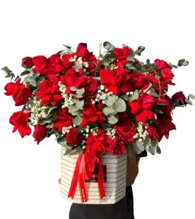 Giỏ Hoa Chúc Mừng Tone Đỏ Quyến Rủ | I-143