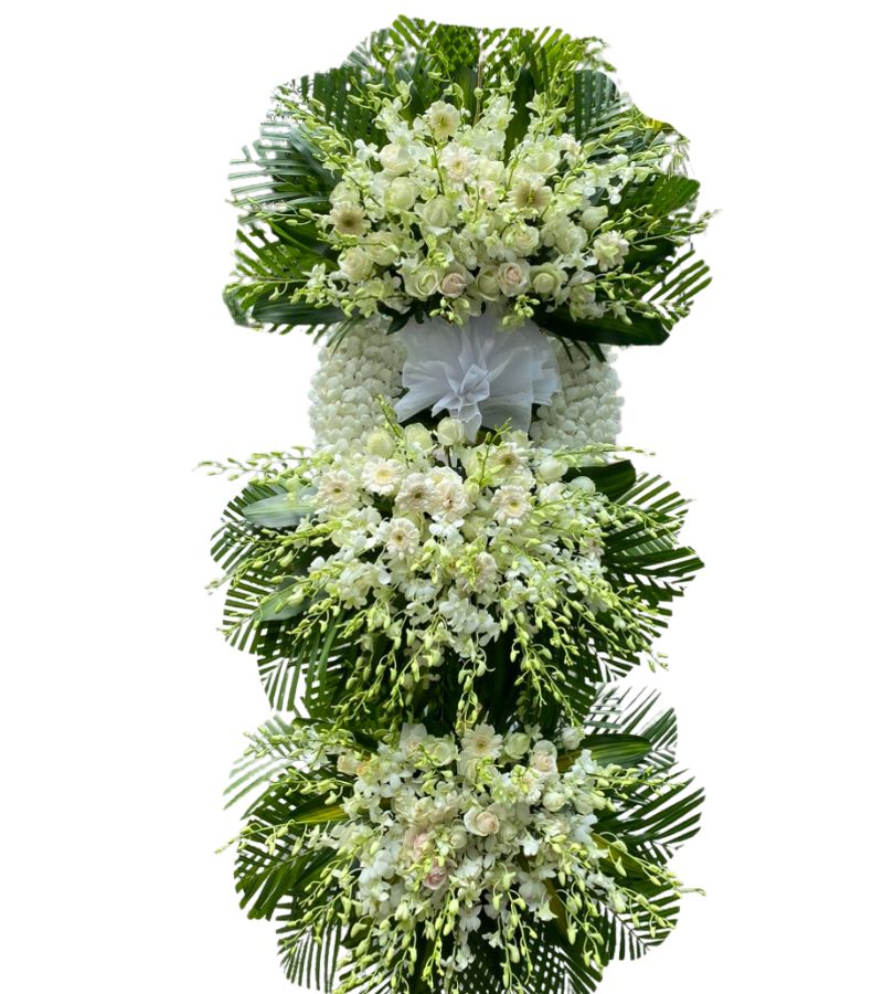 Kệ Hoa 3 Tầng là lựa chọn lý tưởng cho những buổi lễ viếng, vì:- Đáp ứng nhu cầu về thẩm mỹ và trang trọng trong không gian tang lễ.