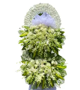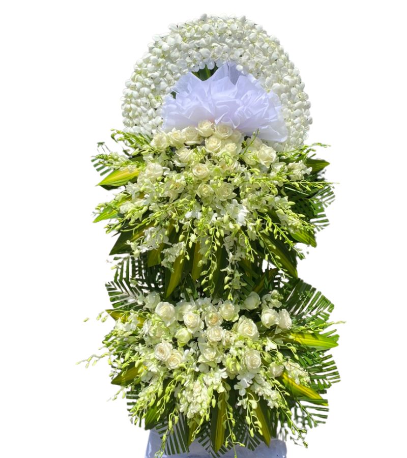Vòng Hoa Tone Trắng – Tưởng Niệm Vô Cùng là sản phẩm hoa đám tang hiện đại và sang trọng, mang đến sự trân trọng tối đa cho người đã khuất. Sản phẩm không chỉ đơn thuần là hoa mà còn là một thông điệp sâu sắc về lòng tiếc thương và kính trọng.Đặc Điểm Nổi Bật